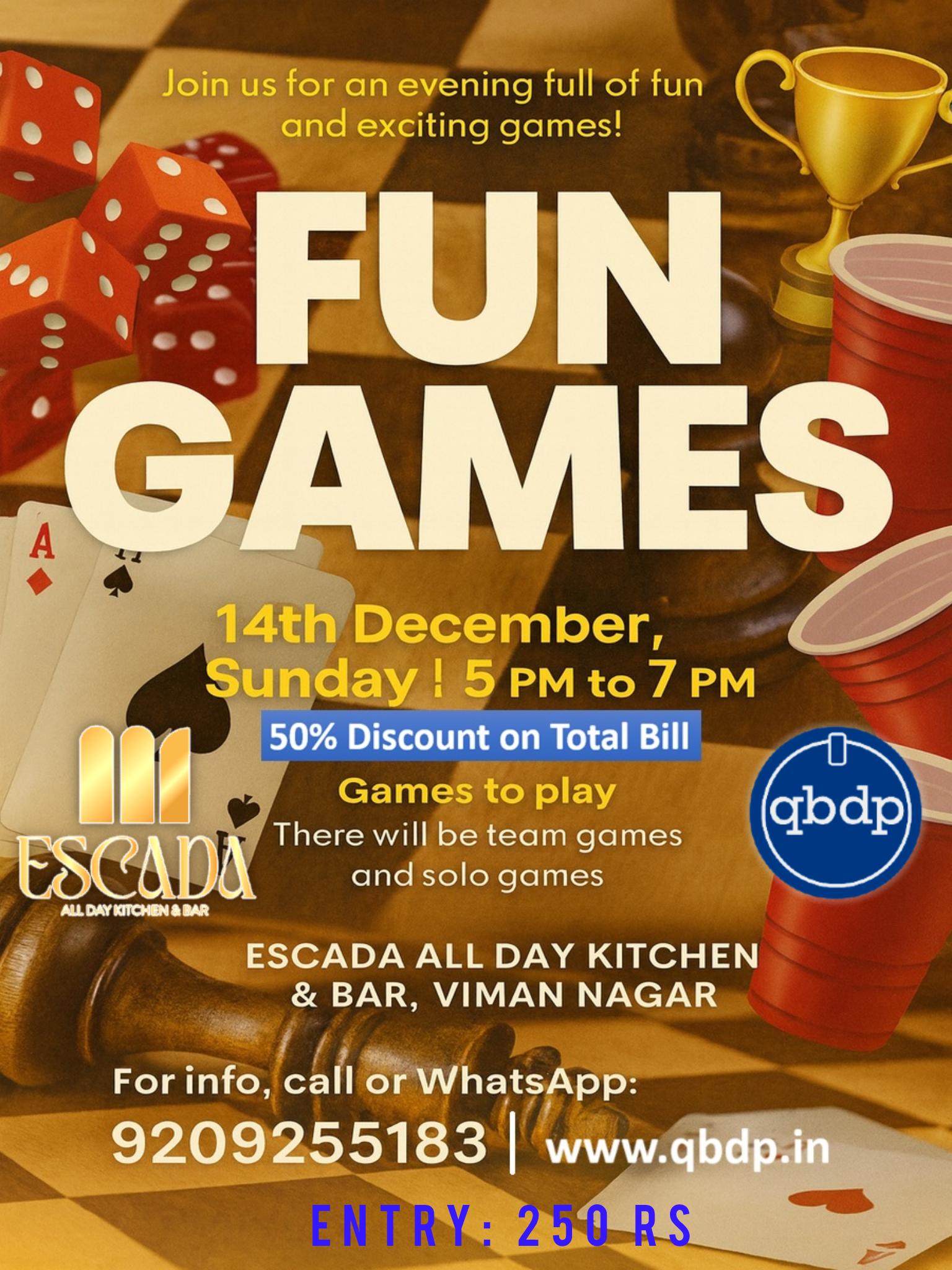 Hello Punekars! Get ready for an evening full of fun, laughter, and great vibes! We’re hosting a exciting game event where you can enjoy, socialise, make new friends, and create amazing memories. Our friendly hosts will ensure you have the best time—whether you join team games, solo games, or simply enjoy the event as an audience with your friends. You can buy ticket and enjoy event as an audience.